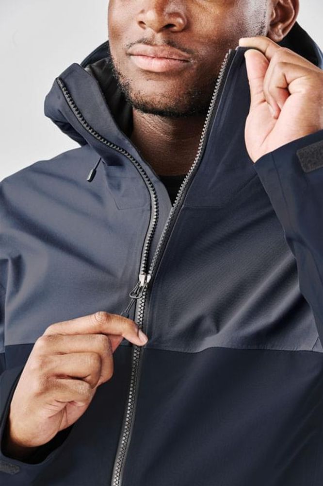 Extreme weather protection with full coverage storm hood and YKK® AquaGuard® waterproof zipper. The Vertex Stormshell features 3-Layer H2XTREME® waterproof/ breathable technology and an advanced articulation and ergonomic fit with mechanical stretch fabric, allowing for a full range of unrestricted movement. Pit zippers help regulate your core temperature, and an articulated adjustable hood with a welded brim provides a comfortable fit and sheds water away from your face. The Vertex Stormshell is built with regular and GRS-Certified Polyester.